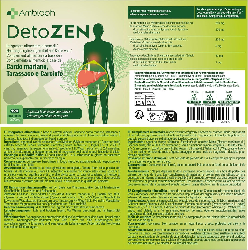 - MADE IN ITALY – QUALITÀ AMBIOPH: Il nostro complesso epatico è prodotto in Italia secondo i più alti standard di qualità, con materie prime controllate e certificate per garantire purezza ed efficacia. Ogni capsula è pensata per offrire un supporto sicuro e naturale alla funzione del fegato e al metabolismo, senza additivi, conservanti o ingredienti artificiali. AMBIOPH rappresenta la garanzia di un integratore premium, sviluppato per chi cerca risultati reali e una cura completa del benessere epatico, con la sicurezza del Made in Italy